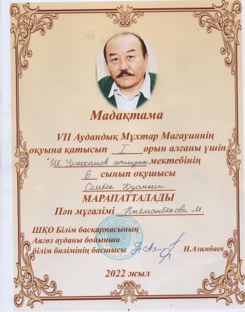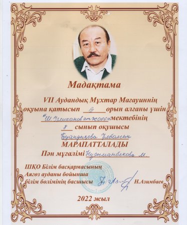 Абай облысы білім басқармасының Аягөз ауданы білім бөлімінің «Ш. Уәлиханов атындағы жалпы орта білім беретін мектебі»