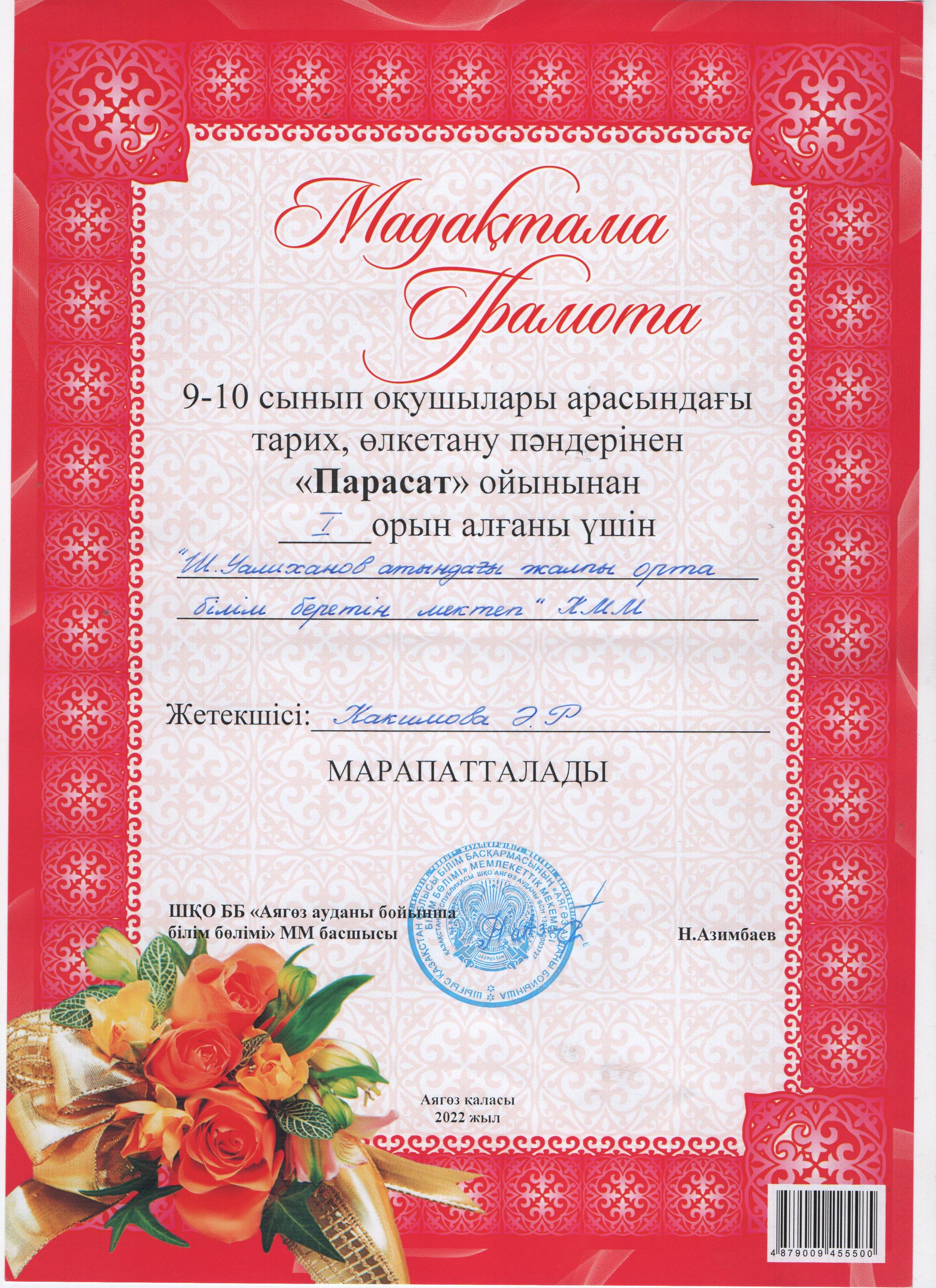 Абай облысы білім басқармасының Аягөз ауданы білім бөлімінің «Ш. Уәлиханов атындағы жалпы орта білім беретін мектебі»