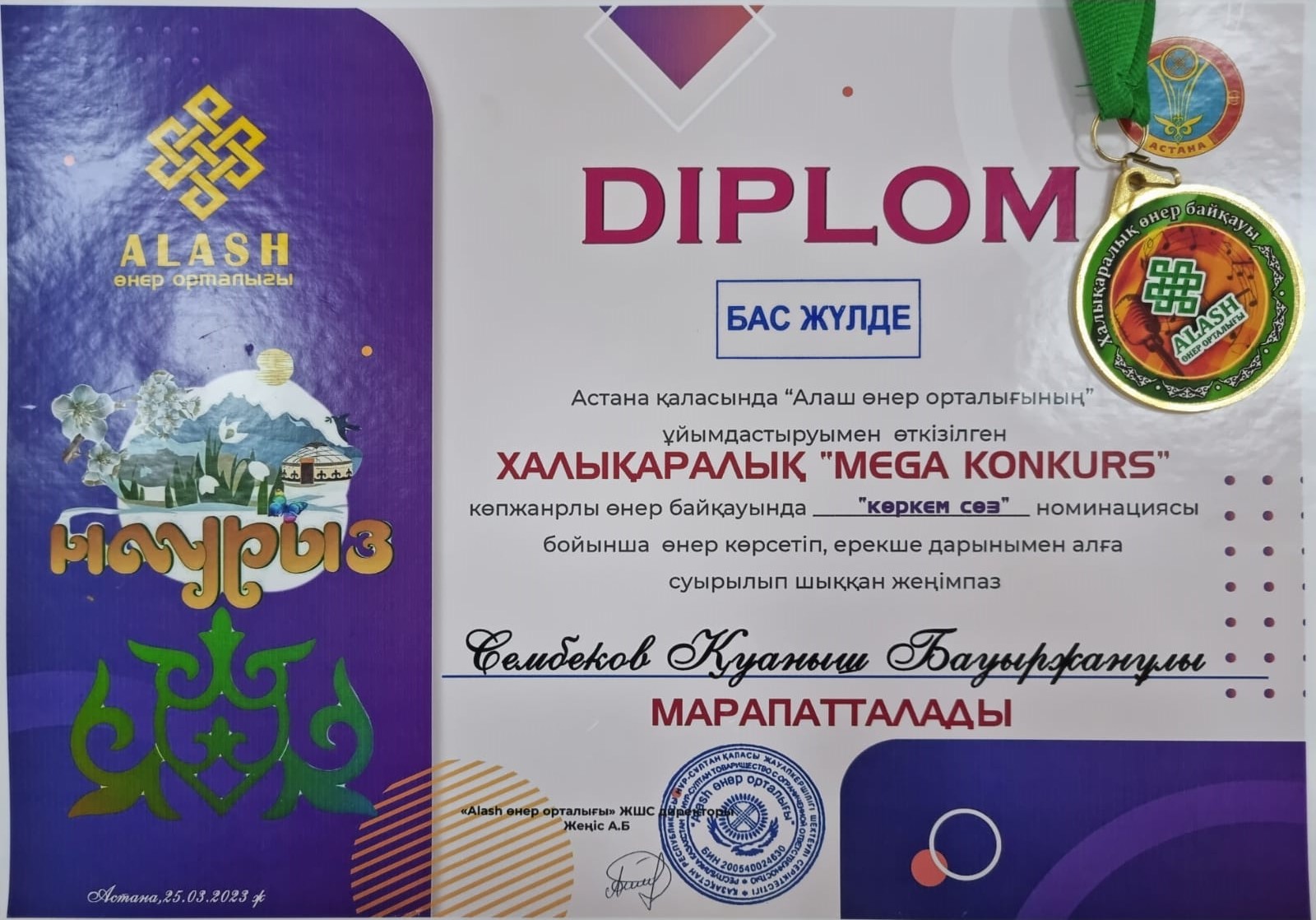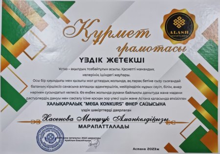 "Көркем сөз" байқауынан 7-сынып оқушысы Сембеков Қуаныш Бас жүлде