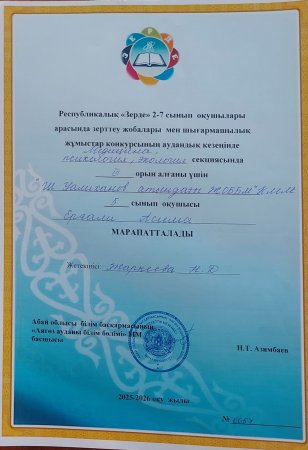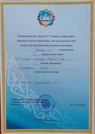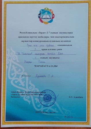 » Республикалық "Зерде 5-7 сынып оқушыларының зерттеу жобалары аудандық конкурсы