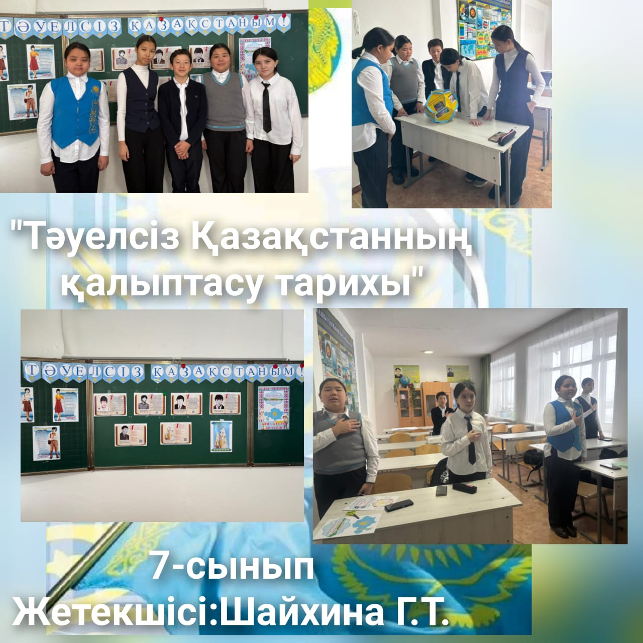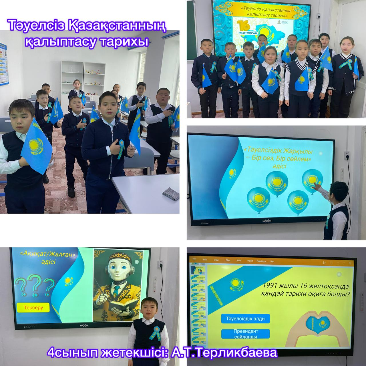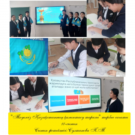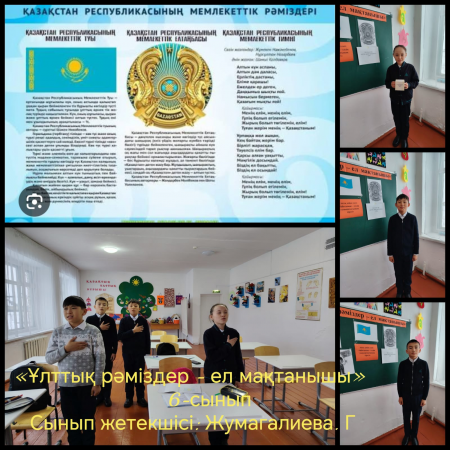 «Тәуелсіз Қазақстанның қалыптасу тарихы», «Ұлттық рәміздер – ел мақтанышы» тақырыптарында сынып сағаттары